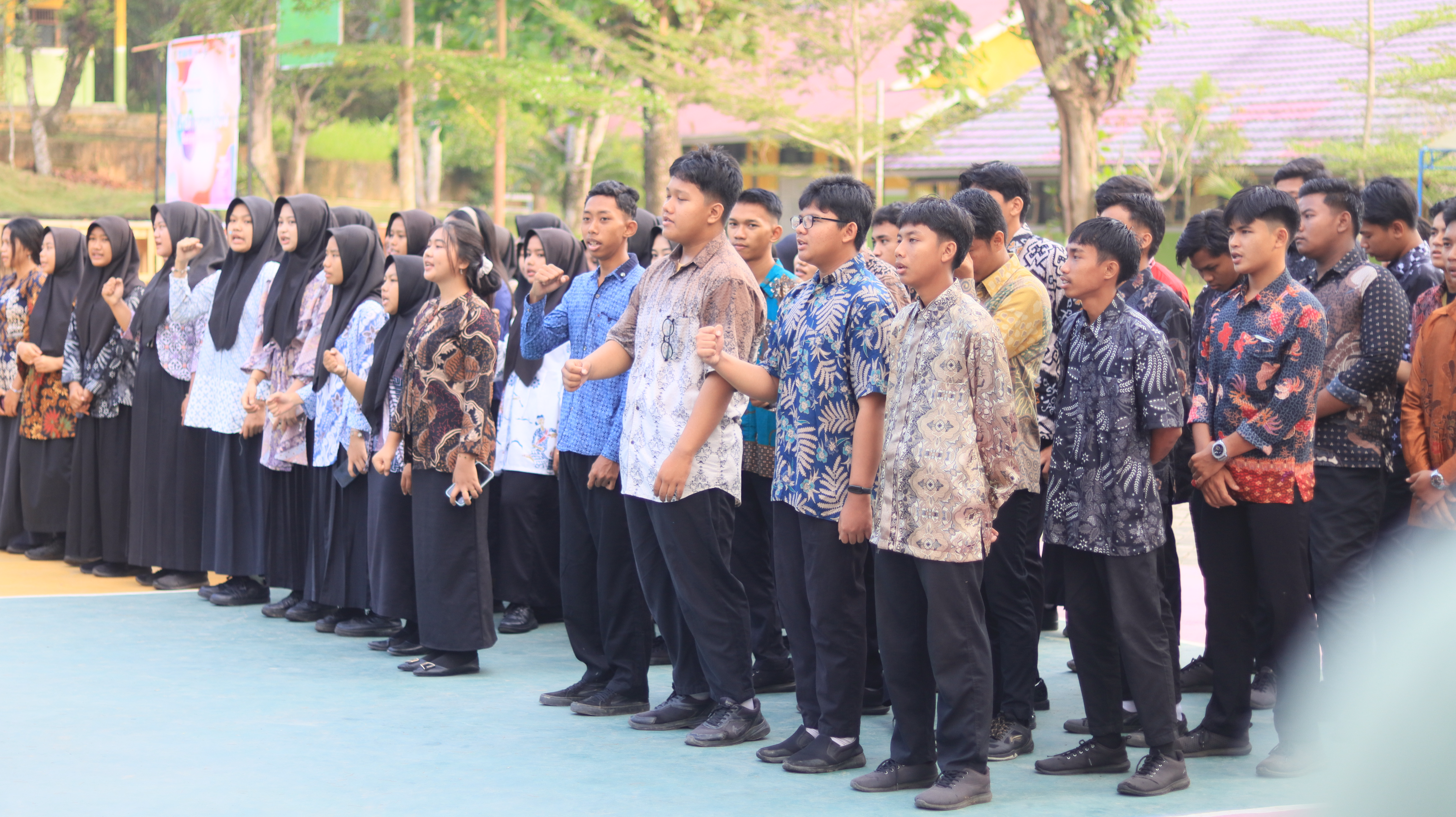 Upacara peringatan ini menjadi momen istimewa, di mana siswa dan guru bersatu dalam spirit nasionalisme yang kental, menunjukkan kecintaan mereka terhadap warisan budaya bangsa. Berbagai motif batik dari seluruh Indonesia dikenakan dengan penuh bangga, merepresentasikan keragaman dan keindahan budaya lokal yang patut dilestarikan.