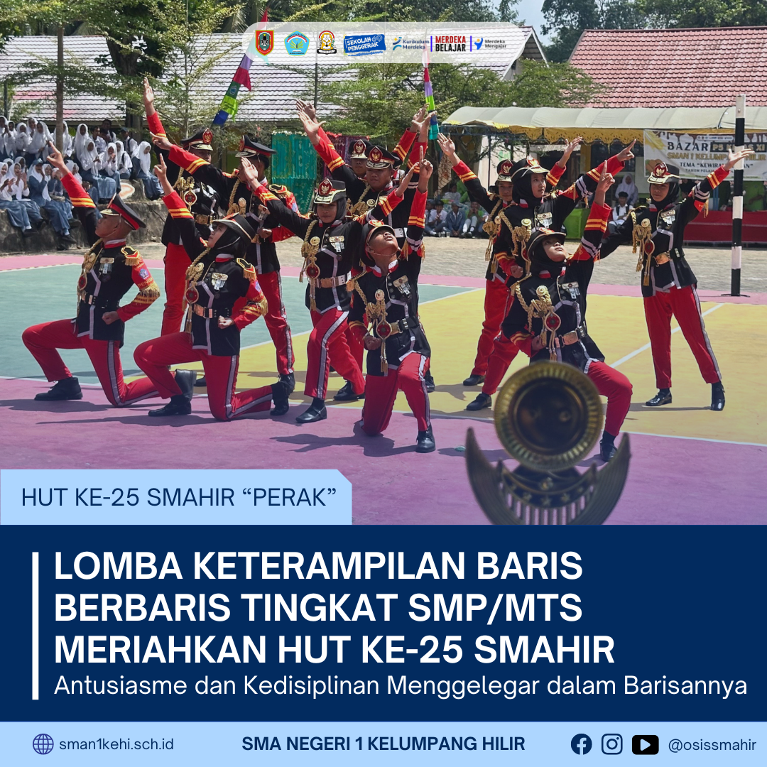 Kelumpang Hilir – Dalam rangka memeriahkan HUT ke-25 SMA Negeri 1 Kelumpang Hilir (SMAHIR), Lomba Keterampilan Baris Berbaris (LKBB) tingkat SMP/MTS se-Kabupaten Kotabaru dan Tanah Bumbu sukses digelar pada Senin, 7 Oktober 2024. Mengusung tema "Sinergi dan Semangat Generasi Muda", lomba ini bertujuan untuk memupuk kedisiplinan, kebersamaan, serta solidaritas di kalangan pelajar.